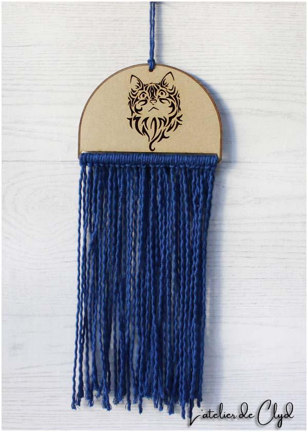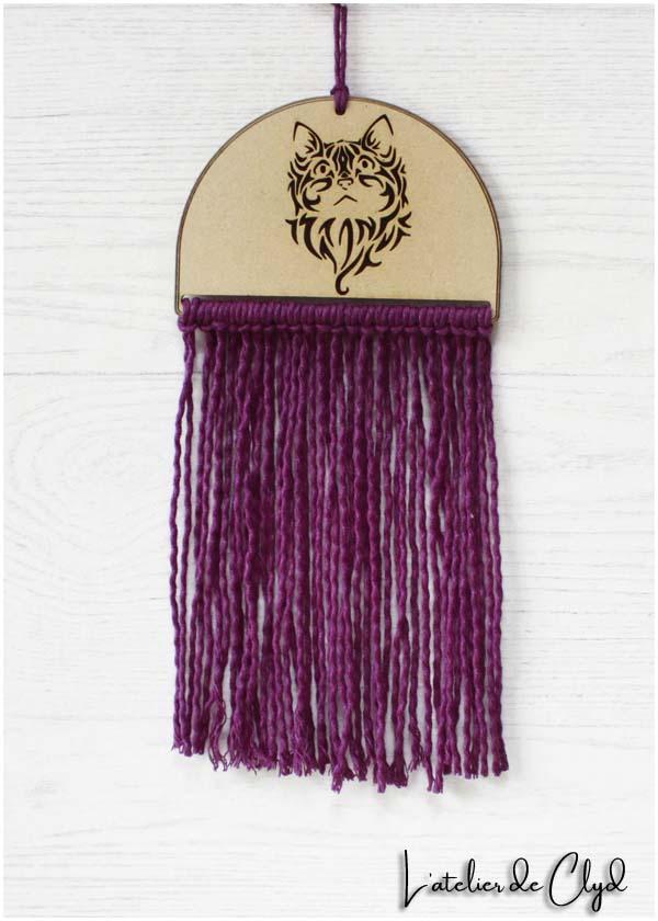 Déco. chat mixte bois et macramé