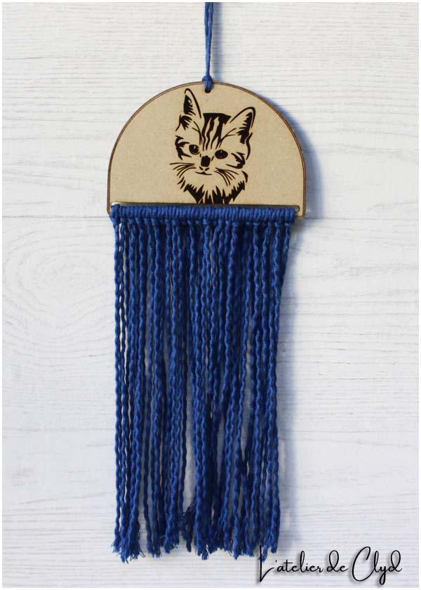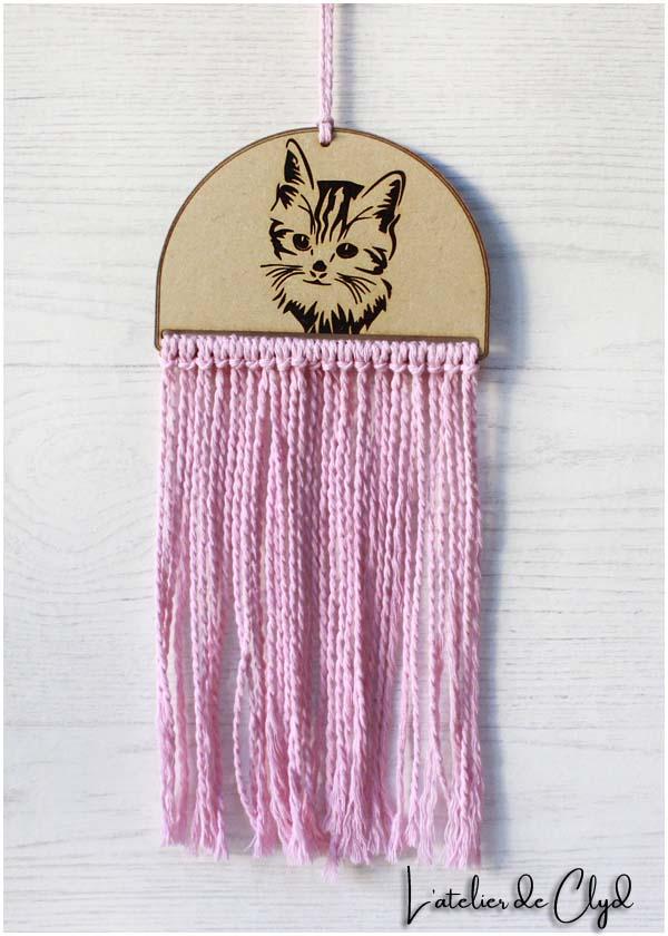 Décoration murale mixte en bois et macramé 24 cm x 12 cm environ