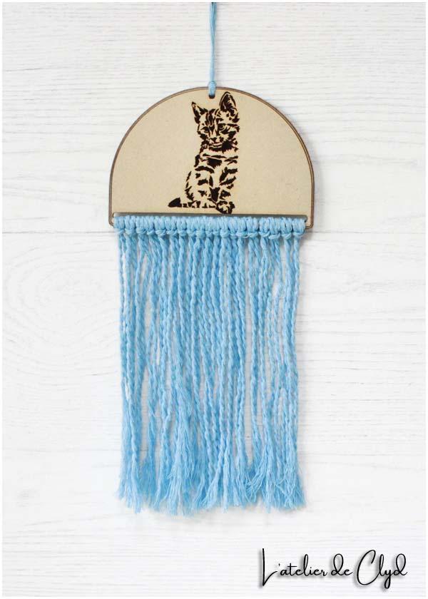 Déco. chaton mixte bois et macramé