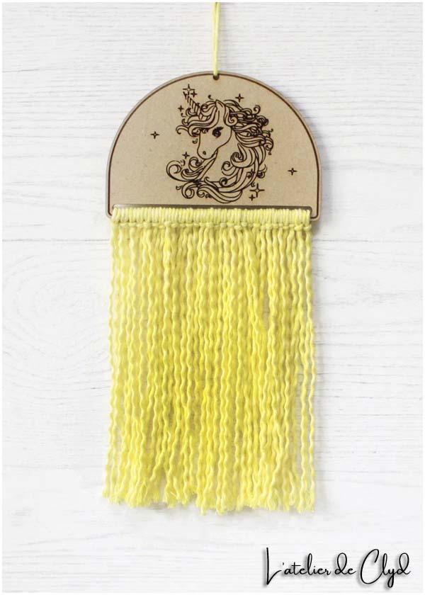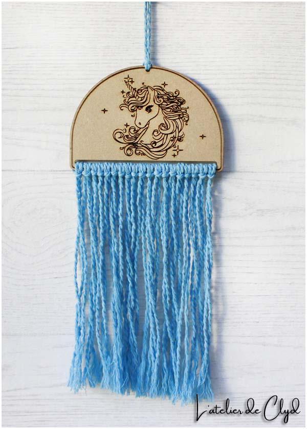 Déco. licorne mixte bois et macramé
