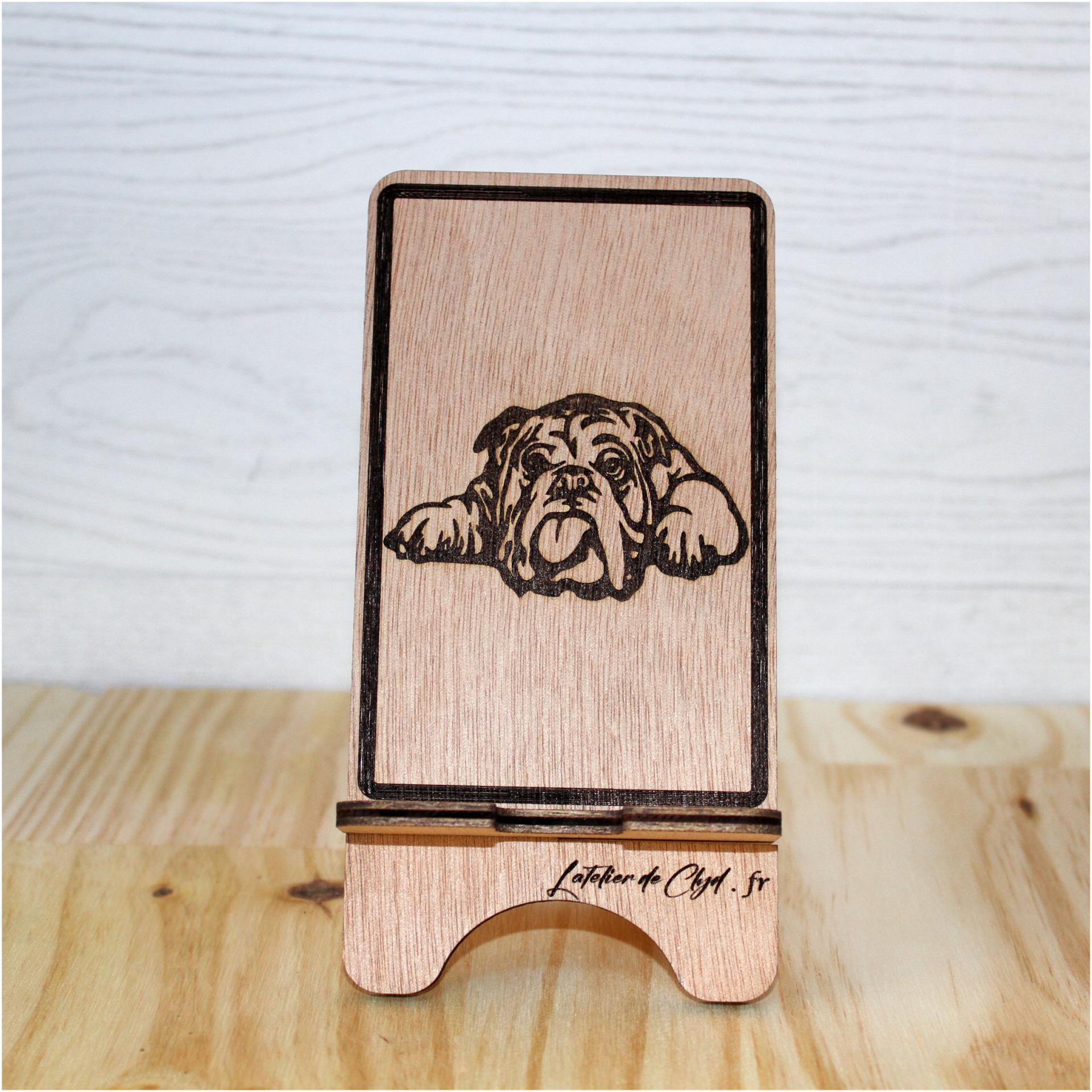 Support de téléphone en bois, élaboré dans nos ateliers.