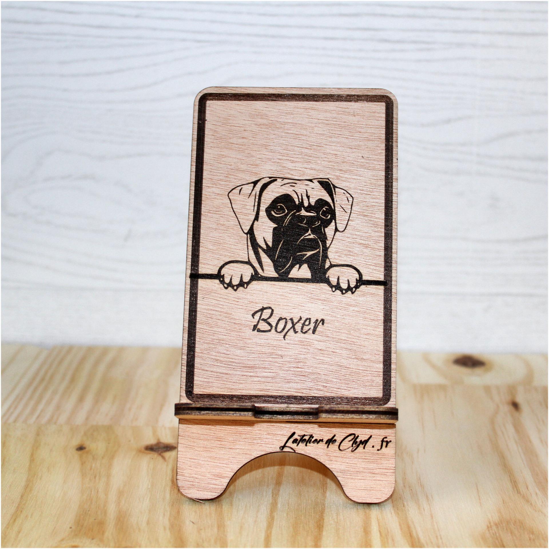 Support de téléphone en bois, élaboré dans nos ateliers.