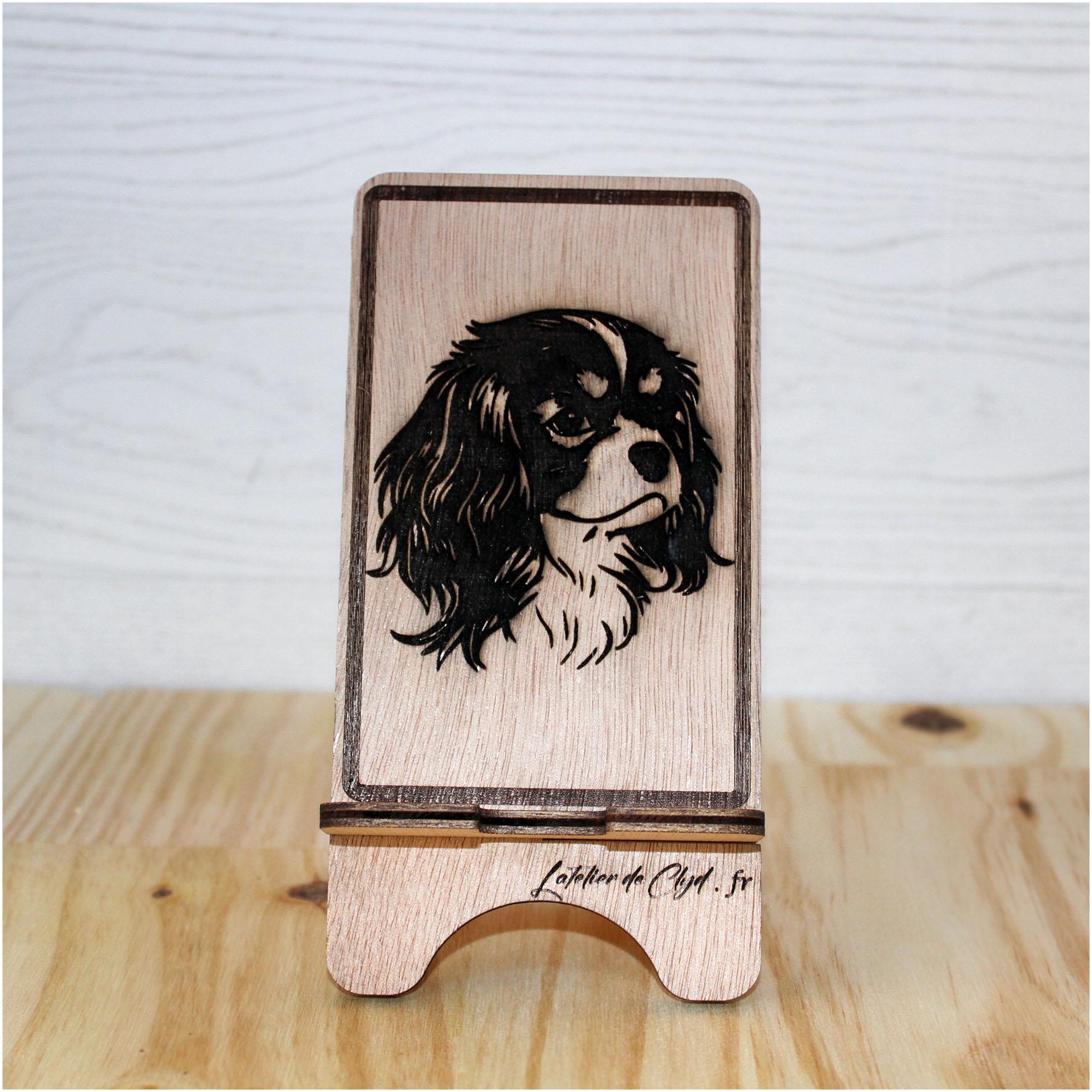 Support de téléphone en bois, élaboré dans nos ateliers.