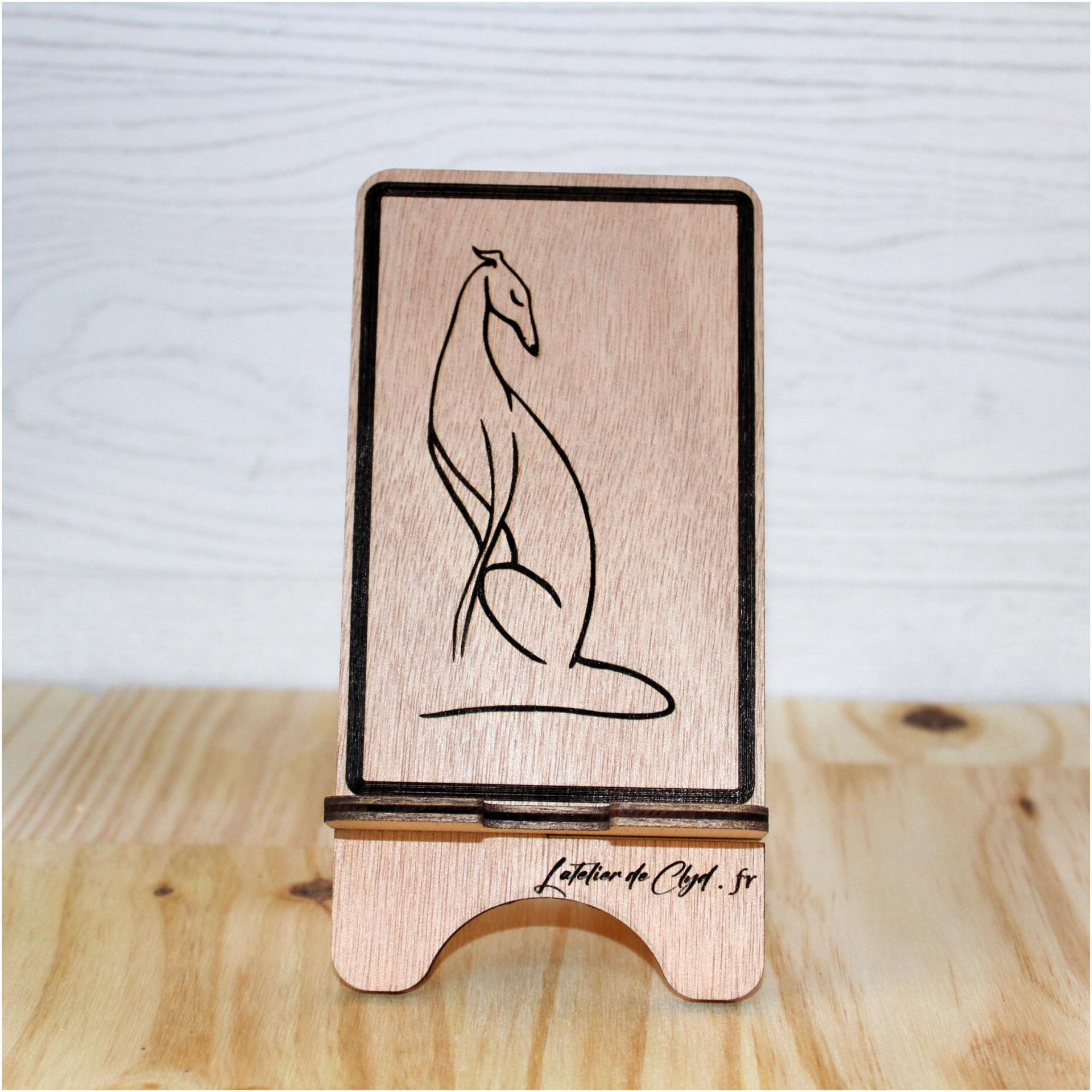 Support de téléphone en bois, élaboré dans nos ateliers.