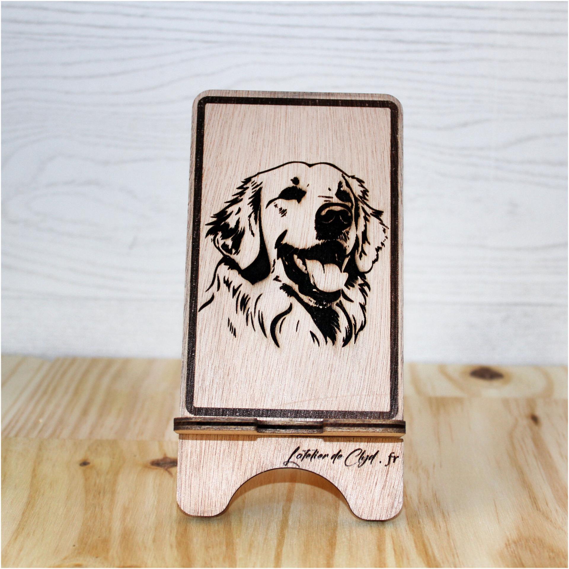 Support de téléphone en bois, élaboré dans nos ateliers.
