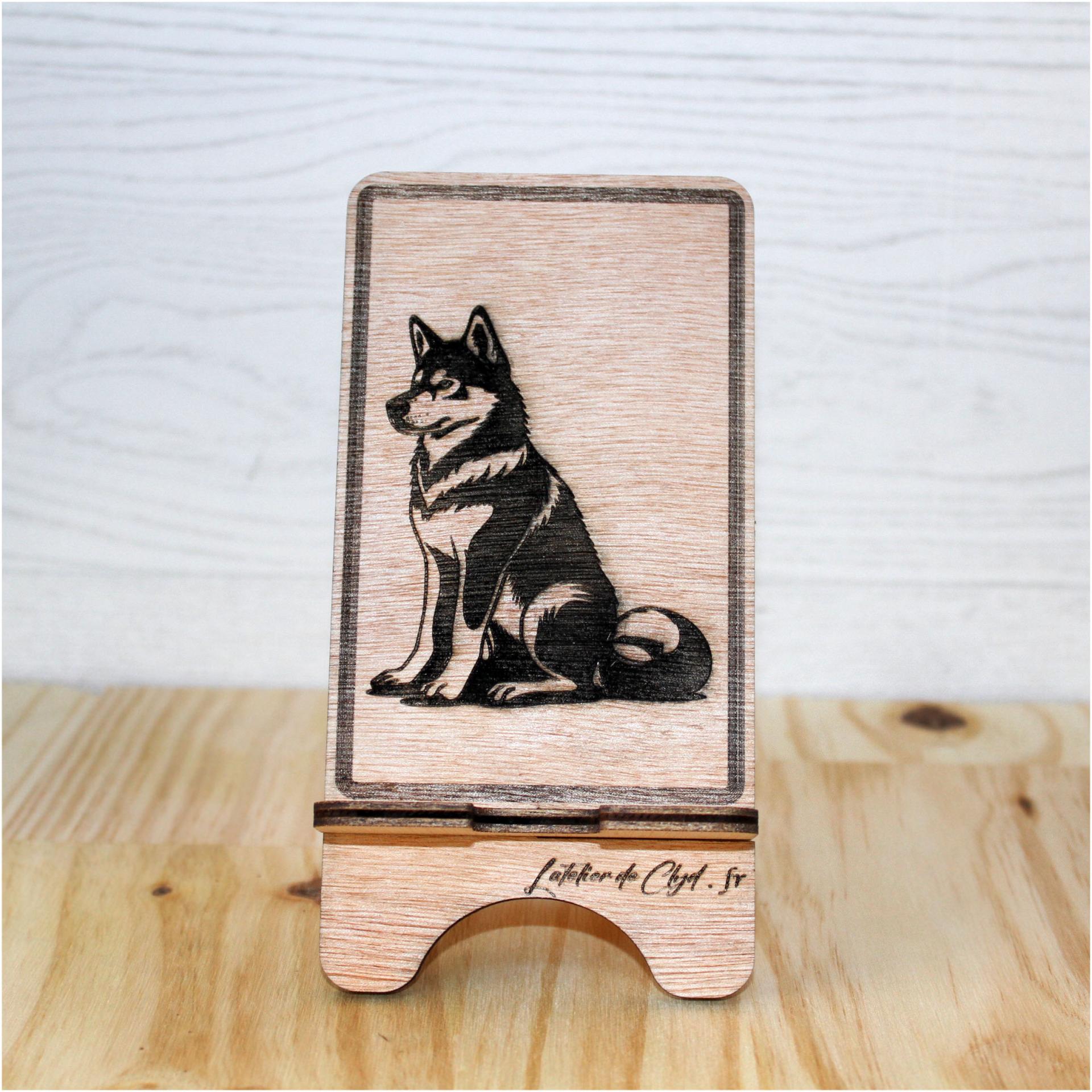 Support de téléphone en bois, élaboré dans nos ateliers.
