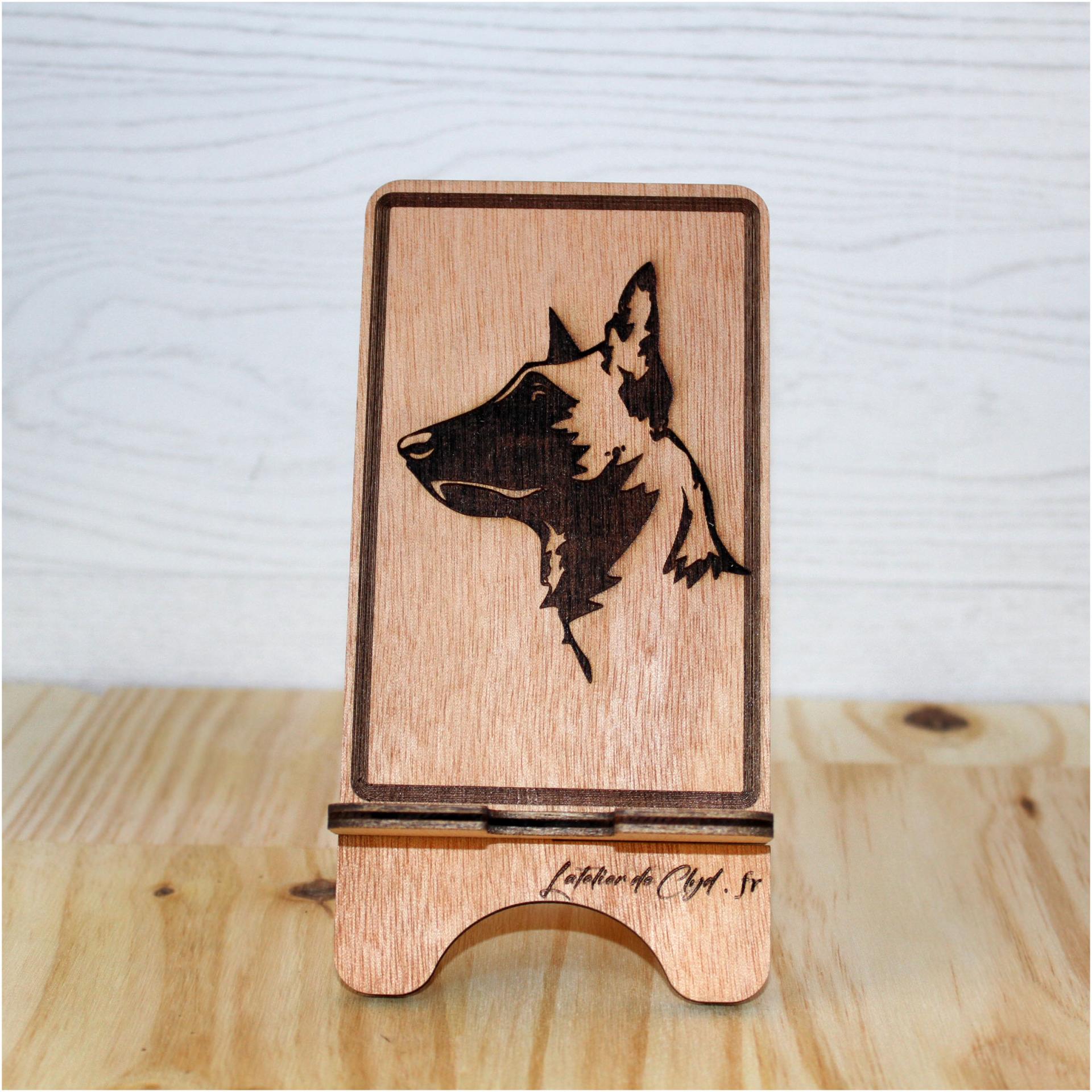 Support de téléphone en bois, élaboré dans nos ateliers.